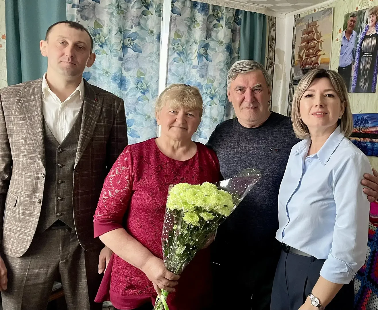 В этот праздничный день юбиляров чествовали начальник отдела ЗАГС по Лысогорскому району Людмила Куторова, руководитель местного отделения Партии «Единая Россия» Олеся Мирошниченко и глава Большерельненского МО Александр Воробьев.