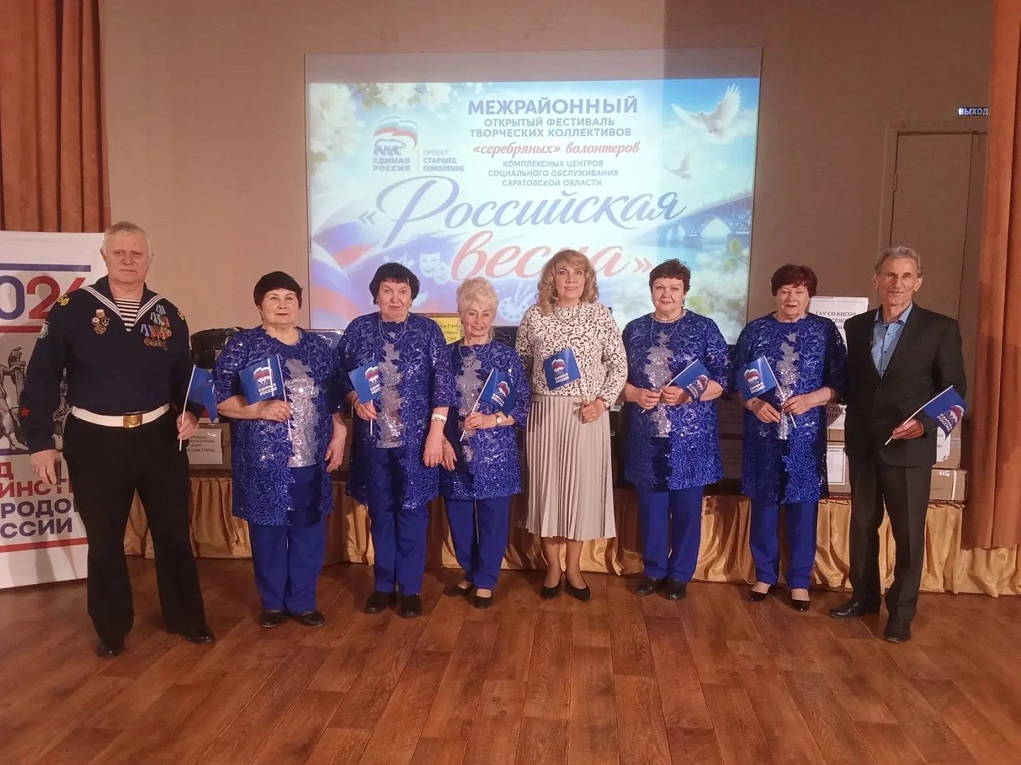 «Серебряные» волонтеры, участники вокального ансамбля «Надежда», при межведомственной поддержке Комплексного центра социального обслуживания населения Лысогорского района и МБУК «ЦКС РДК» Лысогорского района стали участниками регионального фестиваля «Российская весна», организованного совместными усилиями регионального координатора проекта «Старшее поколение» партии «Единая Россия», депутата Саратовской городской Думы Ирины Видиной и местного координатора партийного проекта «Женское движение Единой России», директора центра Яны Кондрашовой.Фестиваль собрал «серебряных волонтеров» со всей области - активных, жизнерадостных людей, которые не только дарили друг другу свое творчество, но и внесли огромный вклад в общее дело. В зале царила особая атмосфера патриотизма и добра. Прозвучали песни о Родине, о великих воинах России и, конечно, о хорошем настроении, которое так необходимо всем нам.