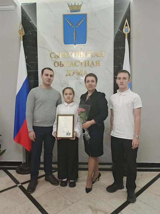 Вчера в Саратовской областной Думе чествовали многодетные семьи.Наталье Николаевне Казимовой, многодетной маме Лысогорского района, вручено благодарственное письмо за достойное воспитание детей.