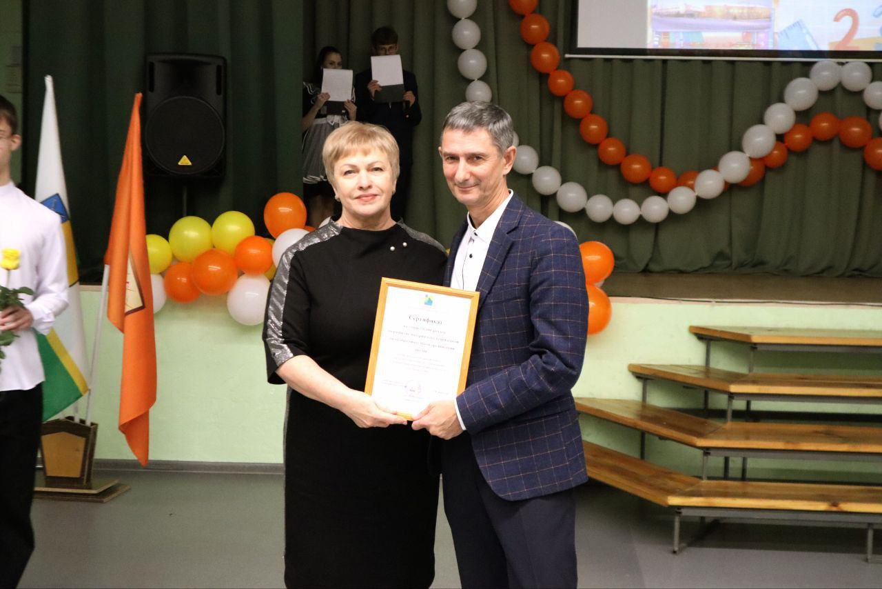 Заместитель главы администрации МР Елена Казаченко передала поздравление с юбилеем от главы района Сергея Фартукова, а также денежный сертификат на развитие материально-технической базы школы.
