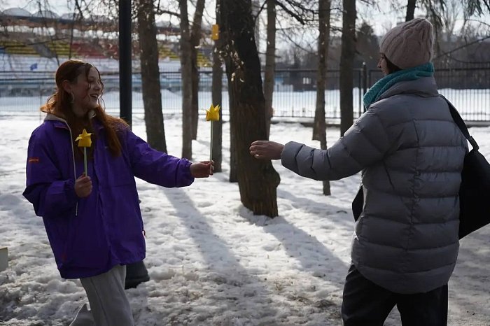 Волонтеры регионального центра "Молодежь Плюс" присоединились ко Всероссийской акции "Вам, любимые", стартовавшей накануне 8 марта. Яркие и сочные тюльпаны активисты сложили из бумаги. И с цветочными композициями вышли на центральные улицы города. Вместе с цветами жительницы Саратова получали поздравления с Международным женским днем.Как отметили сами волонтеры, подобные акции стали доброй традицией накануне государственных праздников.