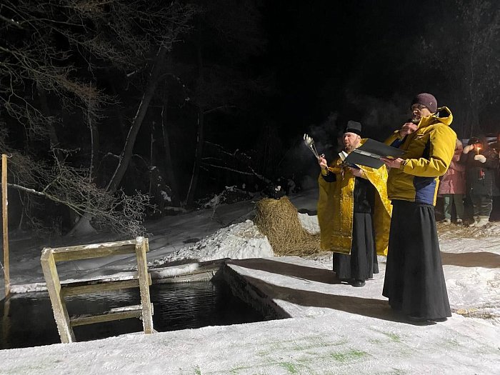В ночь с 18 на 19 января на роднике села Новая Красавка протоиерей Константин Клевцов в сослужении с протоиереем Александром Подойко совершили чин Великого освящения воды, собрав вместе жителей сельского поселения и райцентра.В завершение богослужения отец Константин сердечно поздравил всех с Крещением Господним и окропил святой водой, даря благословение и надежду. После этого у верующих была возможность набрать освященную воду для своих домов.