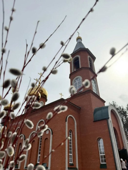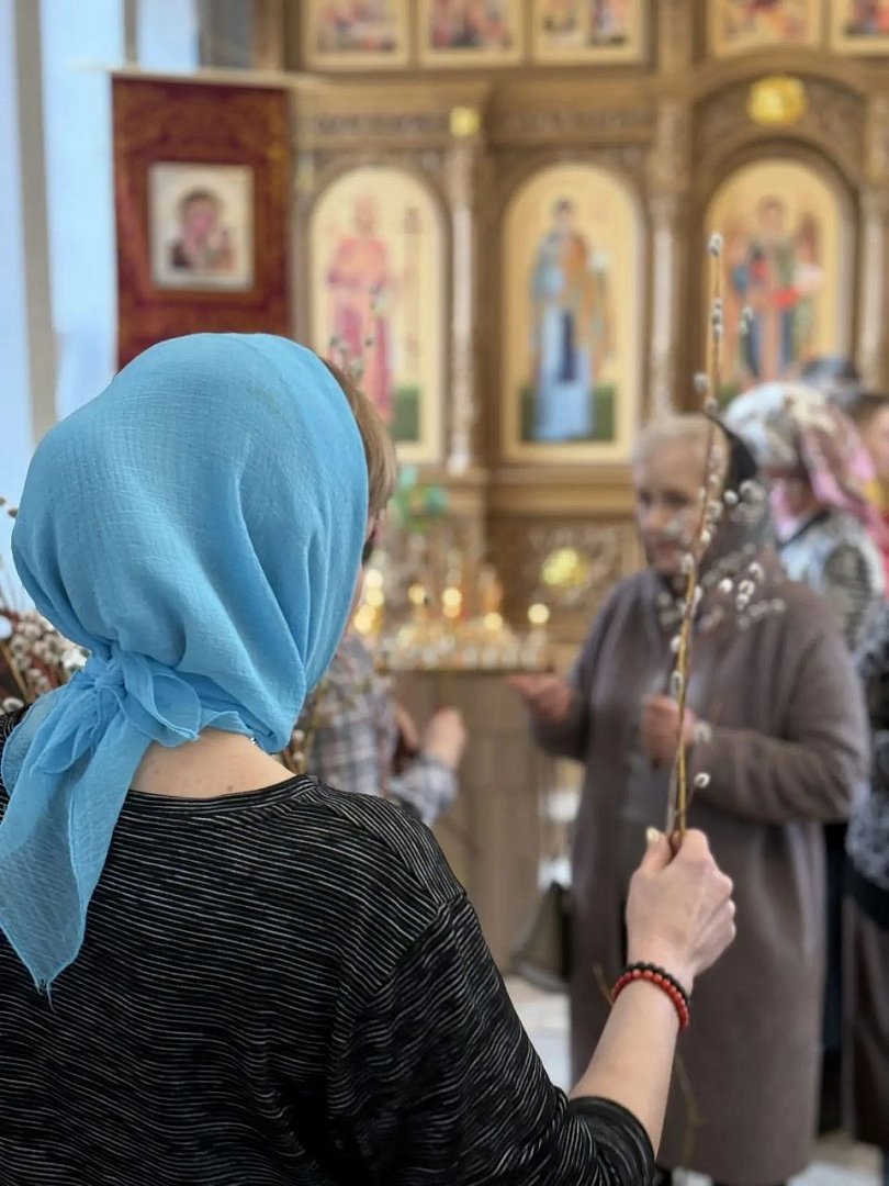 Сегодня в храме святого великомученика Димитрия Солунского, настоятель храма, протоиерей Константин Клевцов, совершил Божественную литургию, после которой прихожане получили освященные веточки вербы.