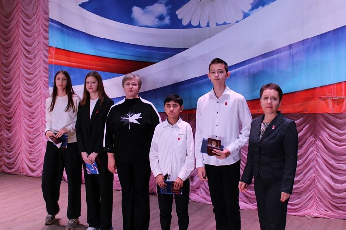 Совместно с руководителем местного отделения «Движение Первых» Натальей Казимовой она вручила паспорта Российской Федерации четырём юным жителям Лысогорского района - Алисе Архиповой, Закариё Абдукахорову, Руслану Избасарову, Алёне Мусихиной.