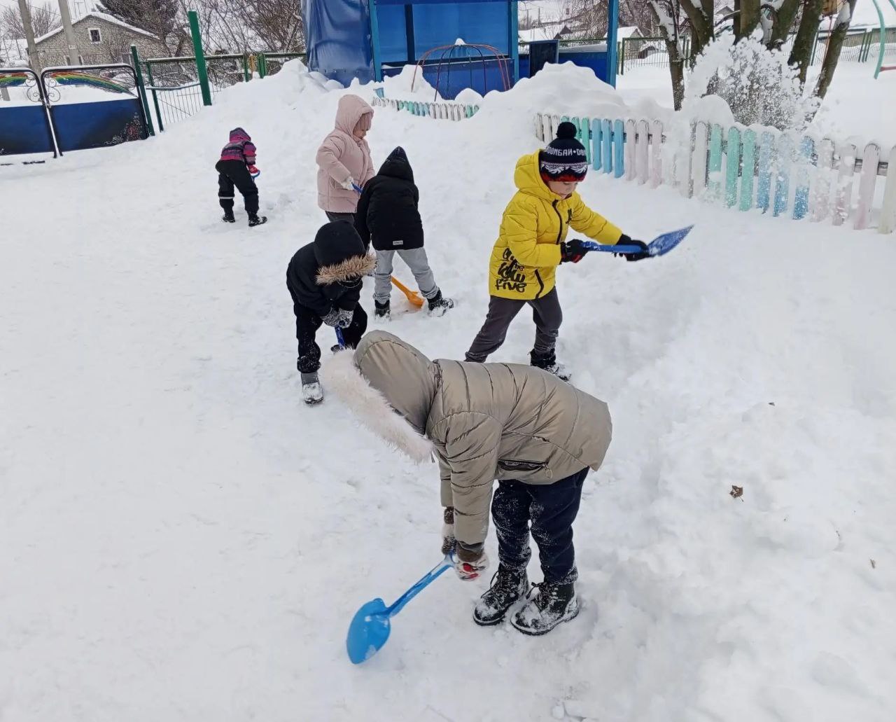 Задача оказалась непростой, однако совместными усилиями ребята успешно справились с уборкой снега вместе с сотрудником детского сада Владимиром Николаевичем К.