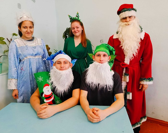 Активисты «Движения первых» из с. Новая Красавка решили поучаствовать в акции «Российский детский Дед Мороз».Чтобы создать сказочное настроение, учащиеся 9 класса перевоплотились в новогодних персонажей. В роли деда Мороза - Ринат Харисов, его внучка Снегурочка - Виктория Дякону, очаровательная ёлочка - Александра Колчина, сказочные эльфы - Сергей Кононенко и Руслан Камбаров. Классный руководитель А. Х. Трифонова тоже не осталась в сторонке.