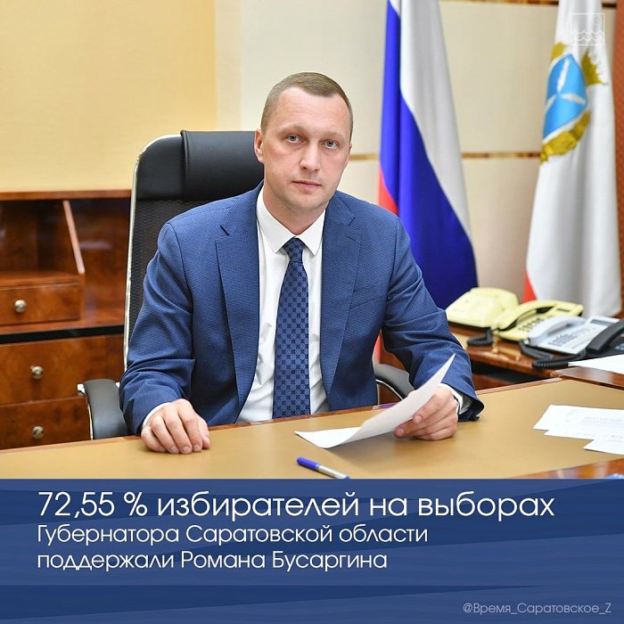 72,55 % избирателей на выборах Губернатора Саратовской области поддержали Романа Бусаргина