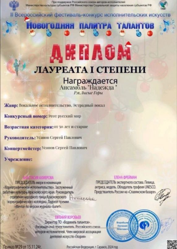 Ансамбль «Надежда» начинает 2025 год с награды Всероссийского конкурса