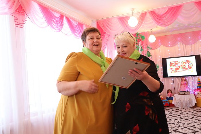 Поздравляя своих коллег с юбилеем Наталья Викторовна поблагодарила за спонсорскую помощь детсаду Н.Н.Шапкарина, директора ПТФ и рассказала о роли каждого сотрудника в жизни дошкольного учреждения. О них читайте в следующем номере газеты «Призыв».