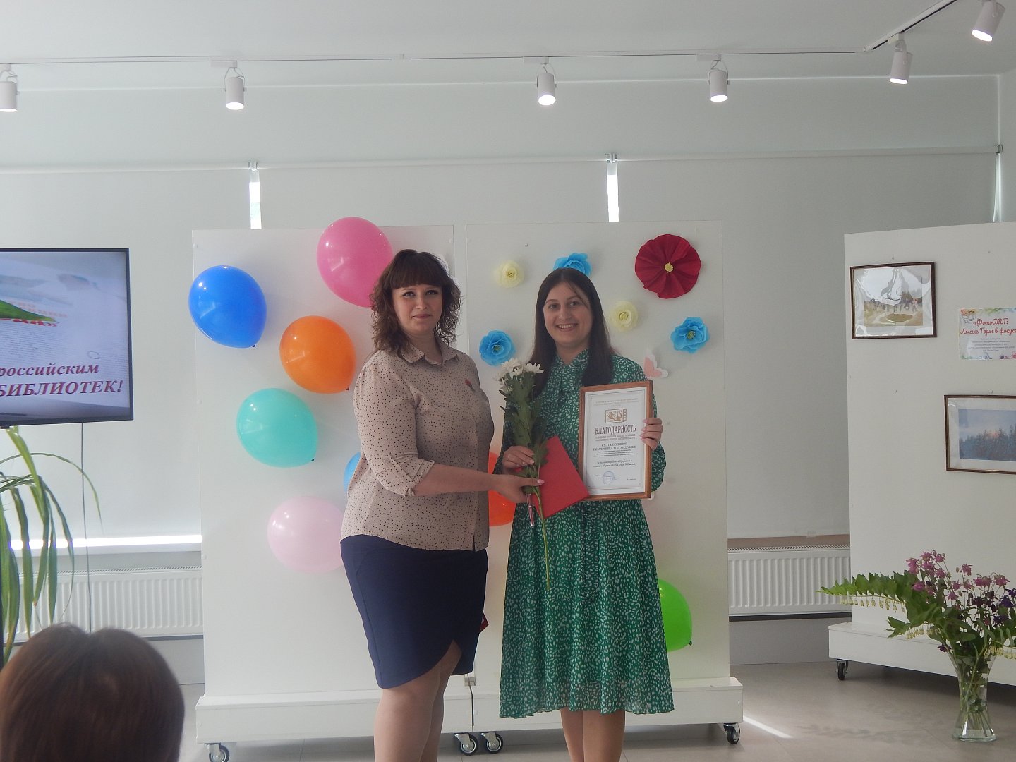Председатель первичной профсоюзной организации Лысогорской ЦБС Е.С. Кичатый поздравила собравшихся и передала коллегам благодарственные письма от профсоюза.