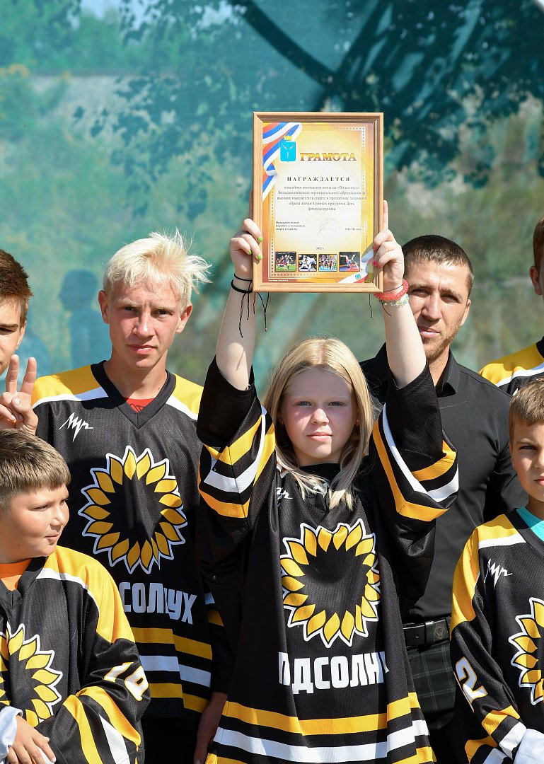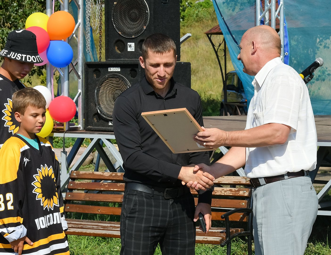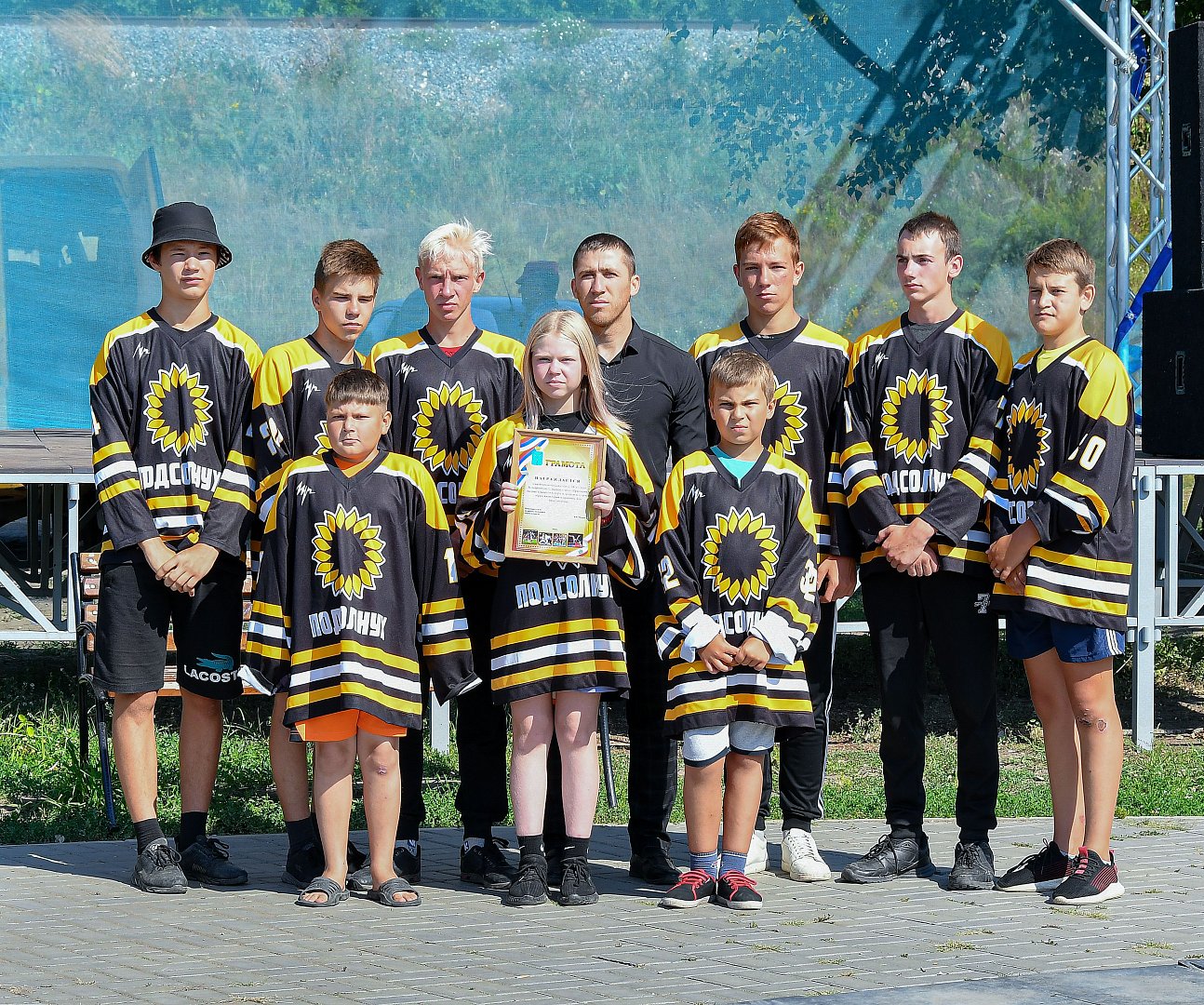Еще в самом начале праздника внимание яркой формой привлекли ребята из команды «Подсолнухи». На данный момент они 22-кратные чемпионы областного турнира «Золотая шайба» и «Кубок Надежды». В 2019 году они принимали участие во всероссийских соревнованиях «Золотая шайба» в г. Сочи. «Лучший бомбардир», «Лучший защитник», «Лучший нападающий» - у каждого члена команды есть свои личные достижения. Об этом я узнала, пообщавшись с их тренером и директором МБОУ СОШ с. Невежкино Т.Г. Магомедалиевым.