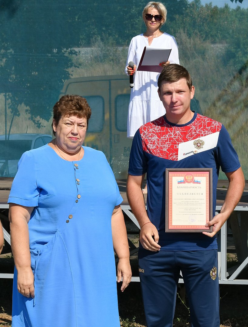 Церемония награждения проходила под дружные аплодисменты. За многолетний и добросовестный труд в сфере образования объявлена благодарность: директору школы с. Невежкино Т.Г. Магомедалиеву, учителям физической культуры Н.Н. Ерхову (с. Шереметьевка), Т.В. Зантария (п. Октябрьский), А.А. Ковалеву (с. Бутырки), И.В. Булычеву (р.п. Лысые Горы), Г.А. Серебрякову (с. Большая Рельня).