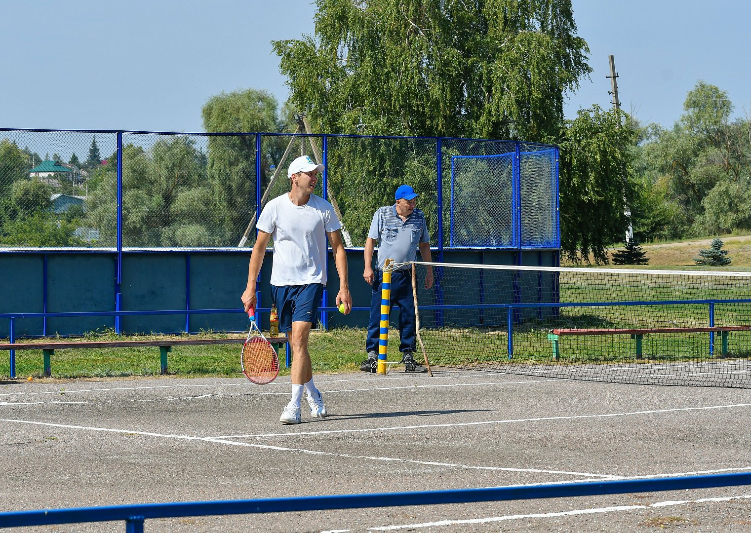 Праздник продолжился соревнованиями по теннису и турниром по футболу среди мужских команд. Для детей на спортивной площадке ГТО прошли «Веселые старты». Солнце палило нещадно, но