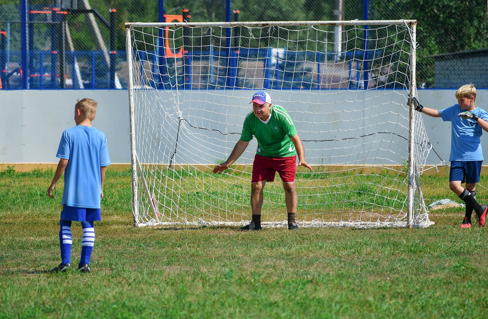 жаркая погода никого не испугала, потому что градус игры на футбольном поле под руководством А.А. Сергунина был еще выше. Сражались команда детей «Пламя Олимпа» и команда родителей «Родком».