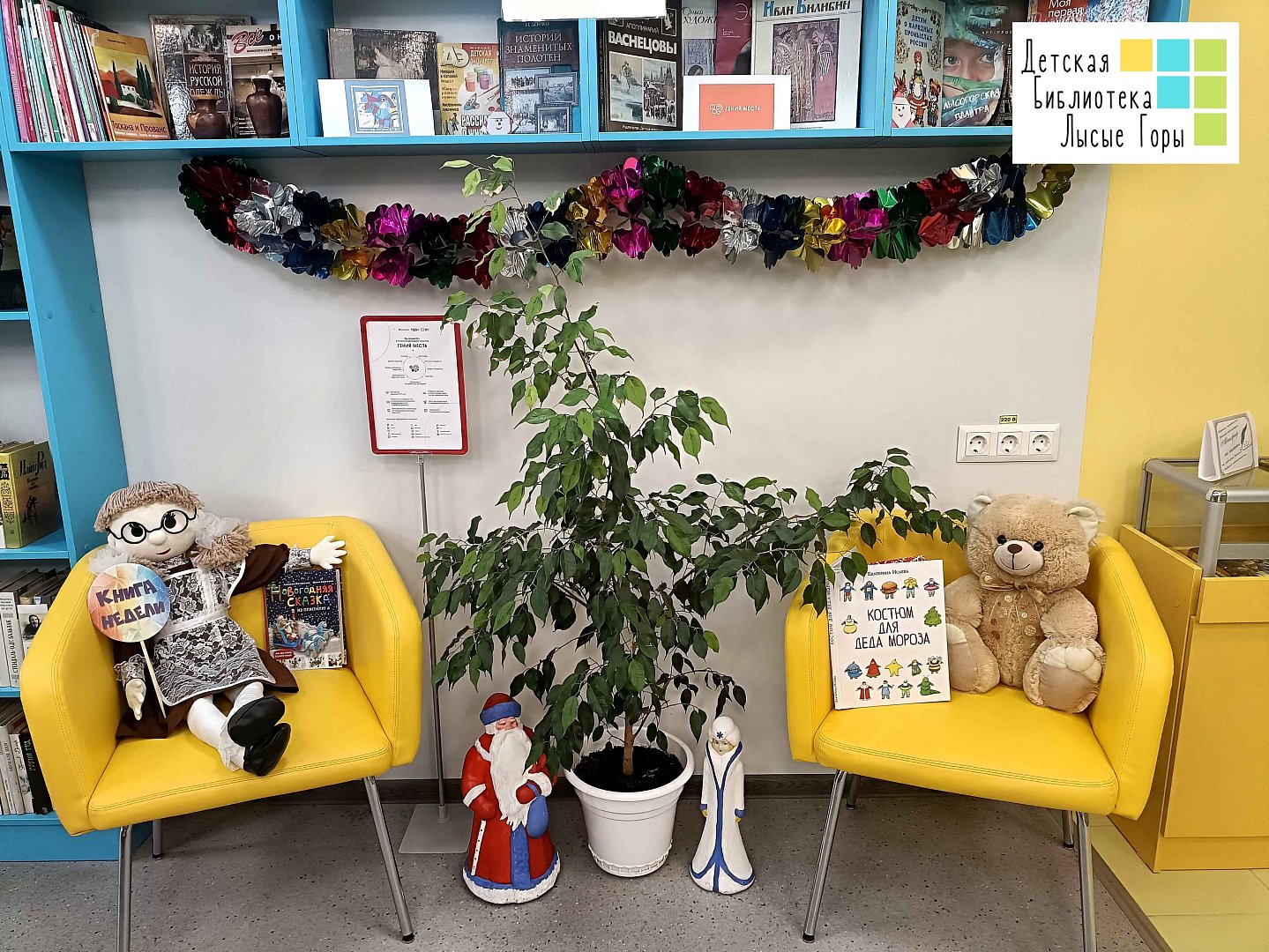 Переступив порог библиотеки, юные читатели попадают в сказку. Сотрудники создали атмосферу праздника, оформив пространство снежинками, новогодними мотивами, мишурой и гирляндами. Не забыли и про подборку книг о зимних приключениях. Сюда маленькие лысогорцы приходят не только за книгой, но и просто за настроением, ведь уже пора загадывать желания и писать письма Деду Морозу.