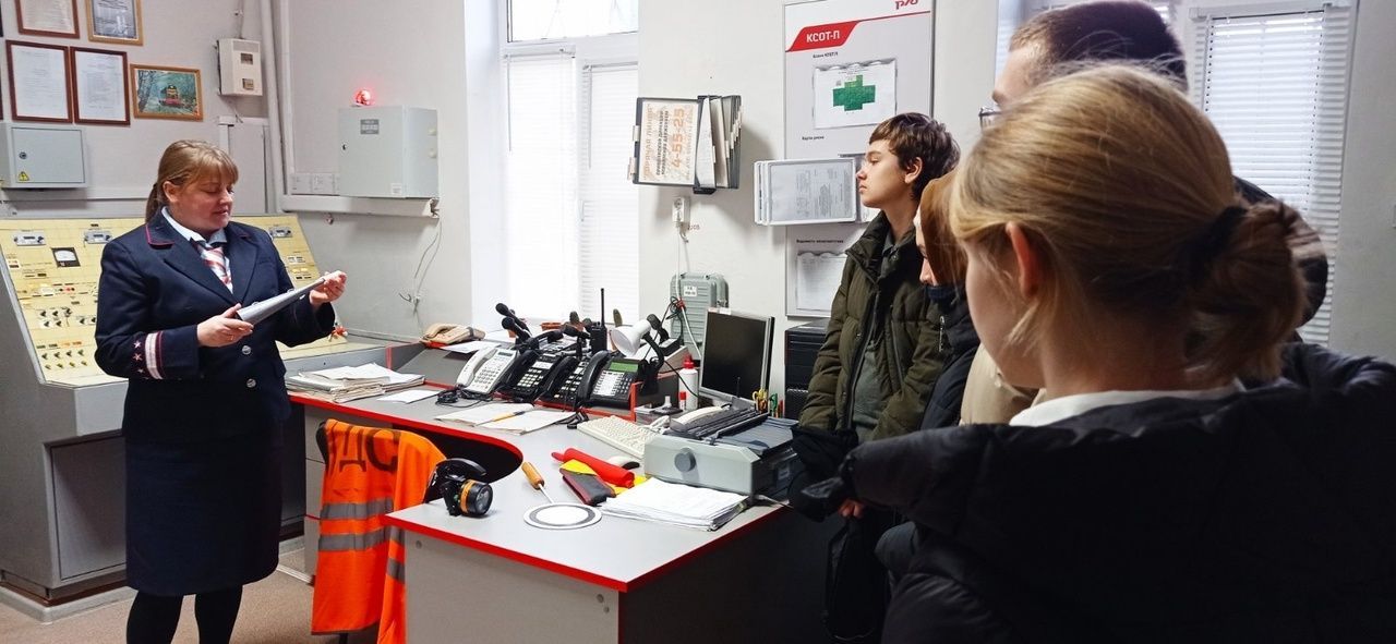 В конце ноября учащиеся 9а класса МБОУ СОШ № 2 в рамках профориентационной работы посетили Лысогорскую железнодорожную станцию. Матвеева А. В. познакомила ребят с принципами работы железнодорожной ветки Аткарск - Калининск, рассказала о профессиях отрасли и проинформировала об учебных заведениях, где можно получить такую профессию. А также напомнила о правилах поведения вблизи железнодорожного полотна и переезда. Ребята получили памятки "Осторожно поезд" и буклеты о с информацией для абитуриентов. Встреча прошла интересно и с пользой, ведь совсем скоро перед выпускниками встанет выбор «Куда пойти учиться».