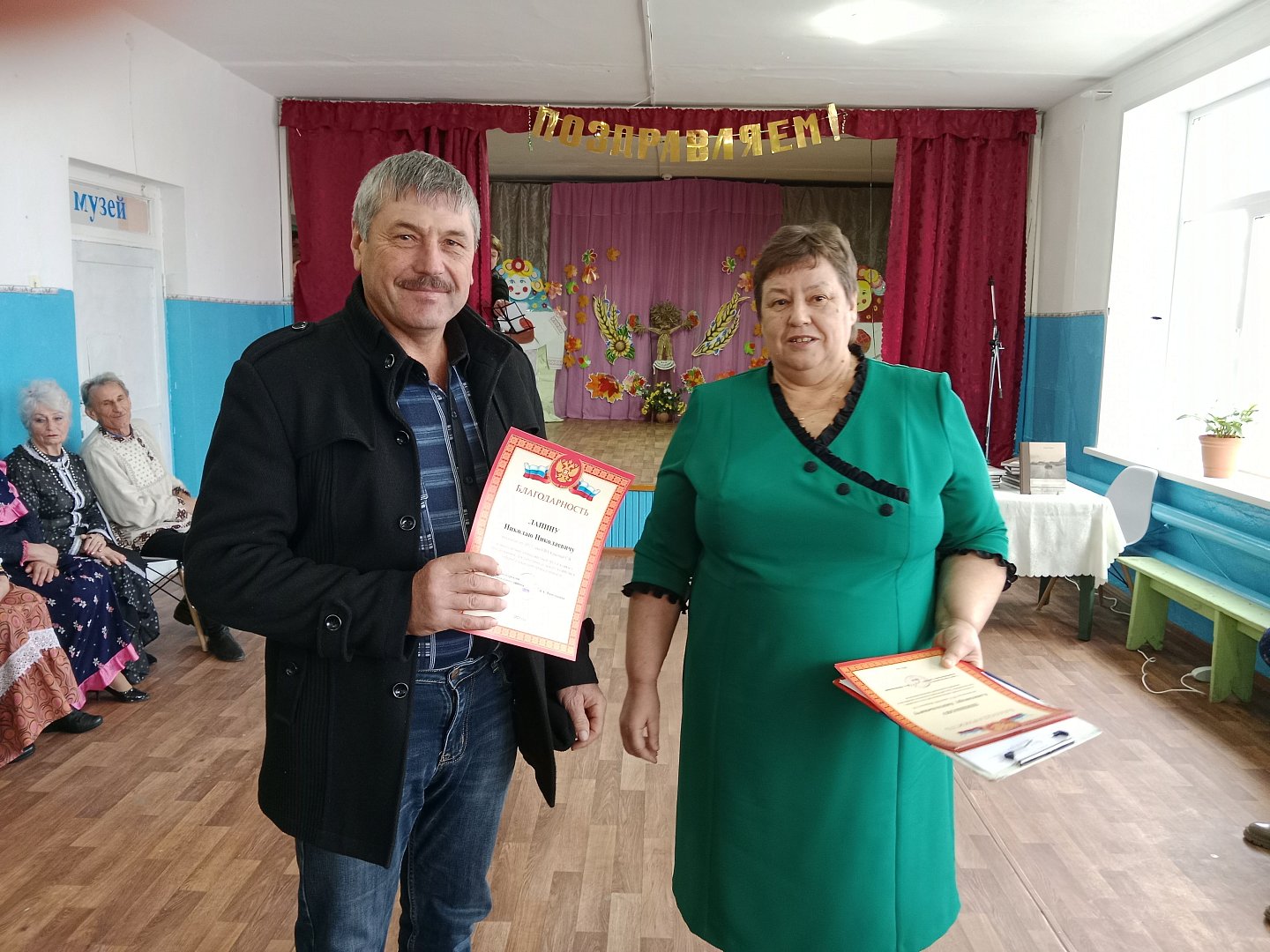 Далее за многолетний добросовестный труд из рук Валентины Александровны благодарности получили механизаторы из разных хозяйств: Ю.И. Собченко, Н.Н. Лапин, А.В. Савельев, А.С. Сизоненко, А.А. Шишков. К сожалению, не все присутствовали в этот день на мероприятии. Собравшиеся жители дружно аплодировали каждому.