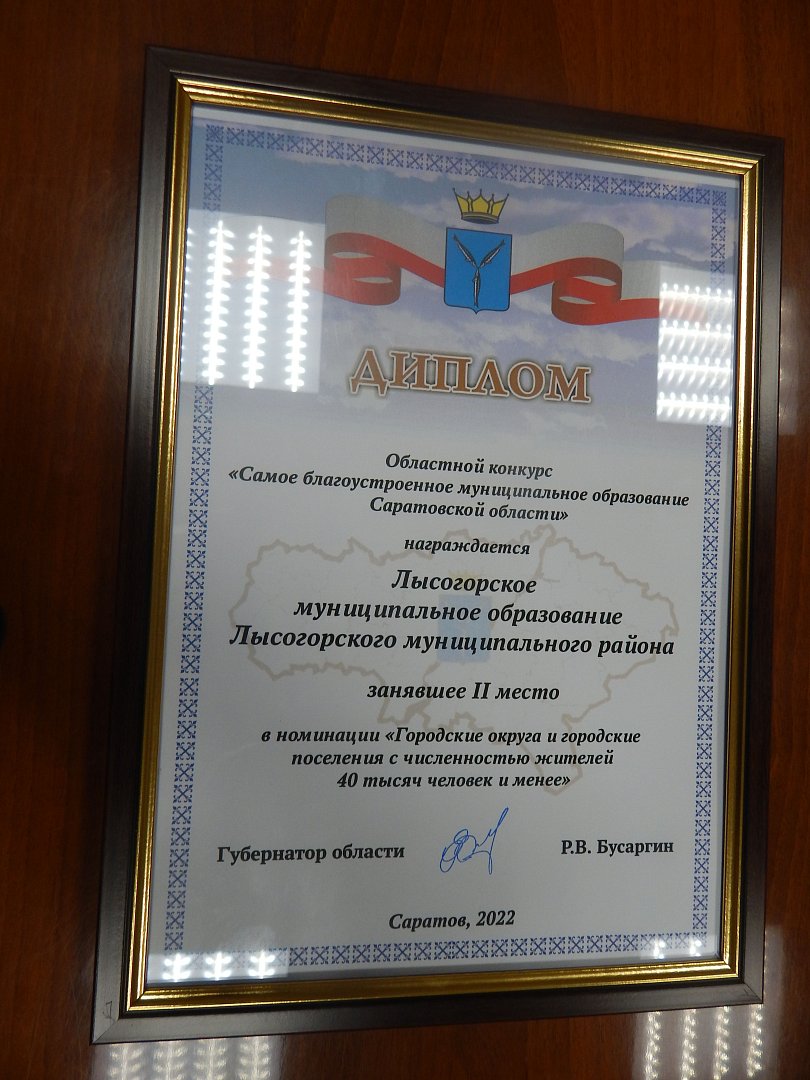 Благодаря совместной работе жителей Лысых Гор, депутатов, администрации райцентр занял второе место в областном конкурсе «Самое благоустроенное муниципальное образование Саратовской области» в номинации «Городские округа и городские поселения с численностью жителей 40 тысяч человек и менее».