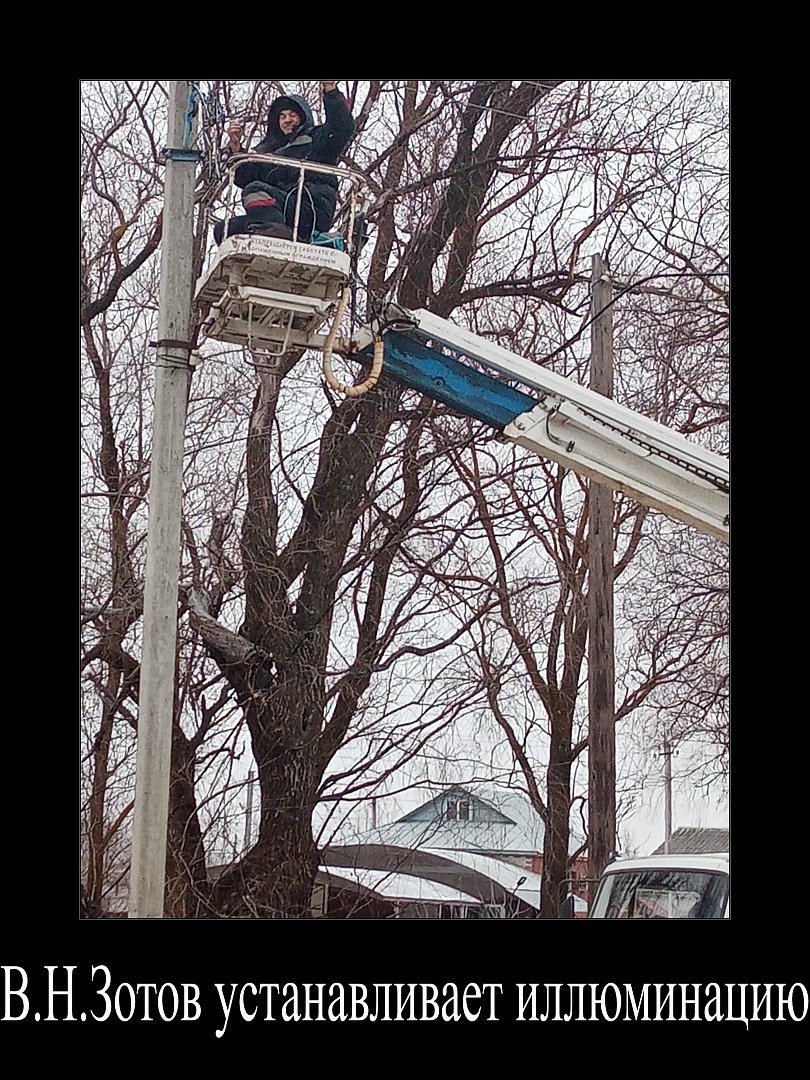 Несмотря на профессиональный праздник, который отмечается сегодня, энергетик с многолетним стажем, а в настоящее время главный инженер МУП "СанСервис" Владимир Николаевич Зотов продолжает выполнять свои должностные обязанности. Чем занимается? Готовит наш любимый поселок к празднованию Нового Года. Ему не все равно как будет выглядеть райцентр в преддверии наступающего года. Уже проведена большая работа по украшению площади 50 лет Октября, разноцветными огнями сверкают улицы Железнодорожная, Советская и другие. Дошла очередь до улицы Мира. Кометы, изготовленные умельцами МУП "СанСервис" занимают свое законное место, чтобы радовать нас с вами. С наступающим Новым Годом!Преображаются библиотеки и общеобразовательные школы. Школьные стены превратились в новогоднюю сказку.