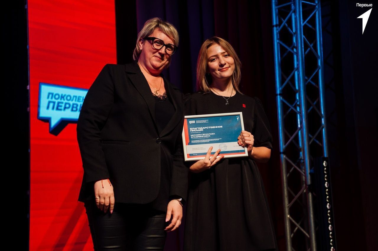 Полина Крымцева и Ярослава Милаева получили благодарственные письма за активное участие в реализации мероприятий регионального отделения Движения Первых в составе Детской Дирекции.