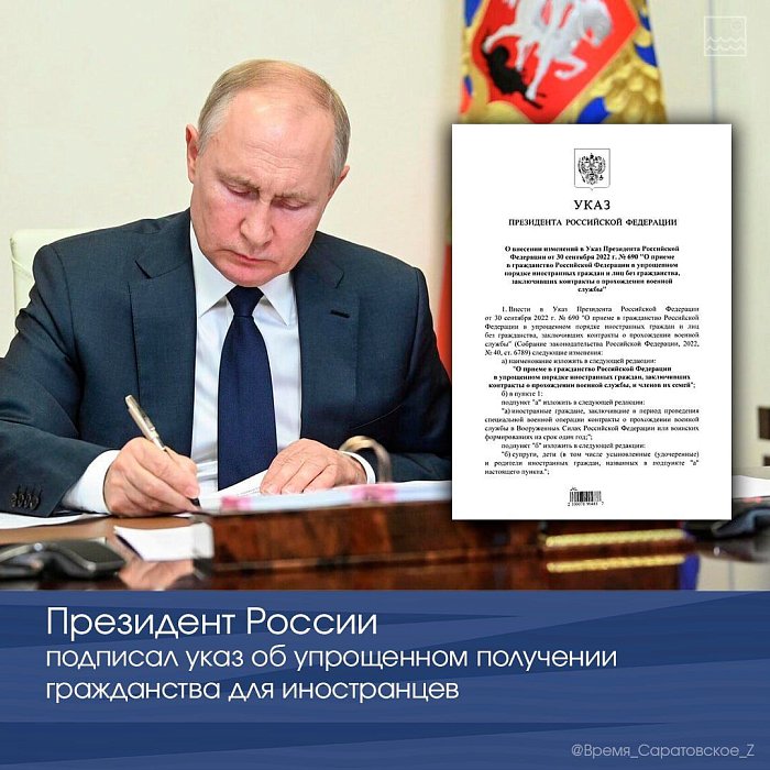 ️Президент России Владимир Путин подписал указ, который позволяет иностранным гражданам, заключившим в период проведения СВО контракты на прохождение военной службы в Вооруженных силах РФ, получить гражданство России в упрощенном порядке.
