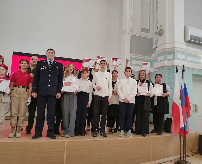 Почётные гости из органов власти, силовых ведомств и общественных ветеранских и патриотических организаций вручили нагрудные знаки и посвятили ребят в ряды Хранителей Истории.