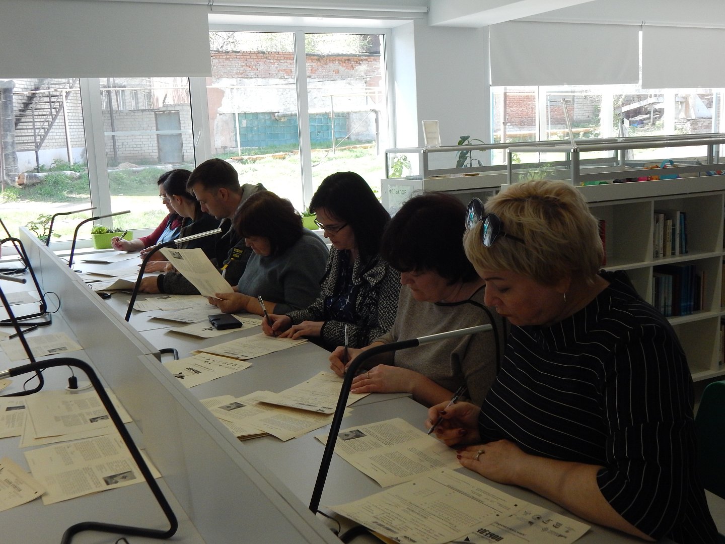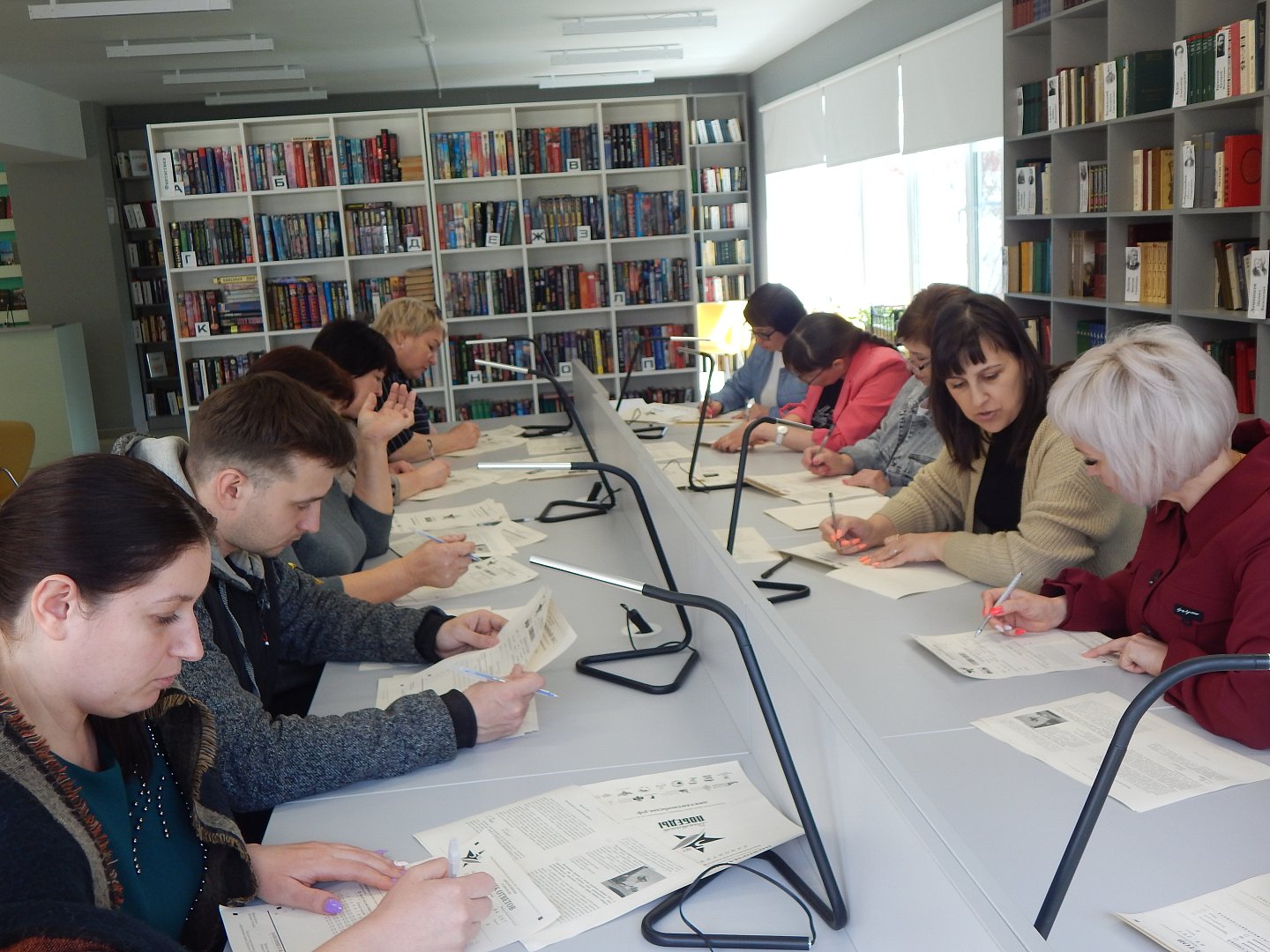 Центральная библиотека Лысых Гор стала одной из площадок для проведения «Диктанта Победы». В акции приняли участие заместитель главы администрации МР Е.А. Казаченко, руководитель общественной приёмной Лысогорского местного отделения партии «Единая Россия» В.А Царькова, работники библиотеки, районного Дворца культуры.