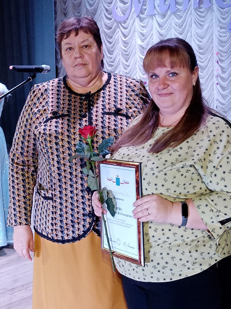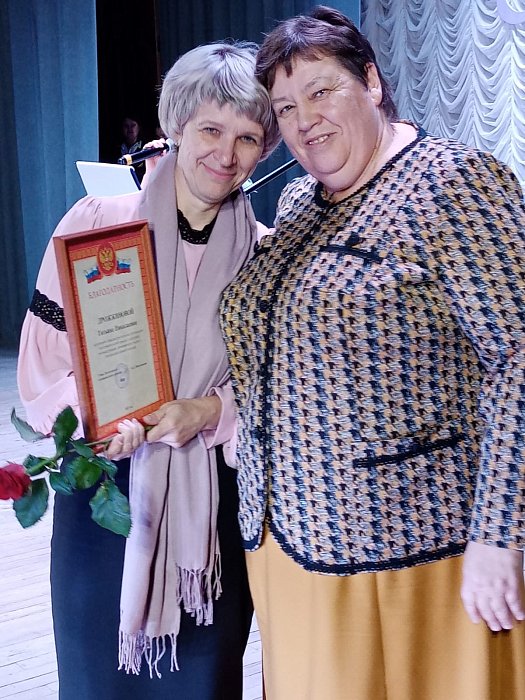 Далее глава района вручила Благодарности губернатора области Екатерине Рева и Марине Грабининой за многолетний и добросовестный труд и высокий профессионализм в работе.