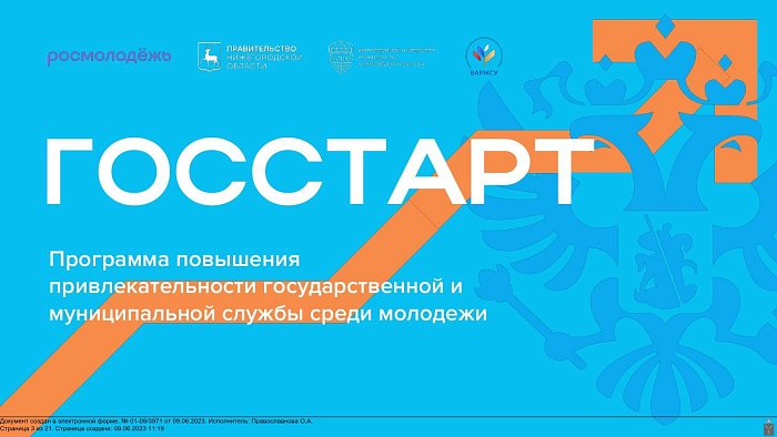 Федеральным агентством по делам молодежи и АНО «Корпоративный университет Правительства Нижегородской области» реализуется программа повышения привлекательности государственной и муниципальной службы среди молодежи «ГосСтарт». Программа «ГосСтарт» представляет собой единую экосистему программ и проектов в сфере государственного и муниципального управления для молодежи.