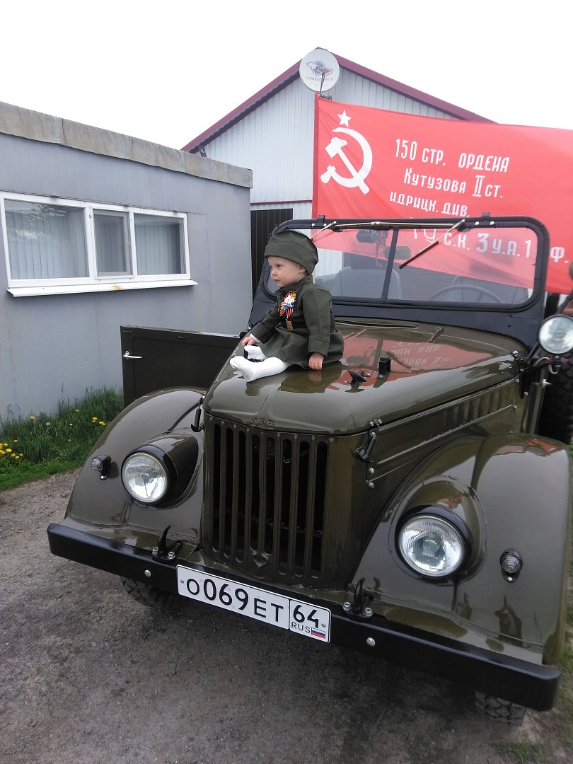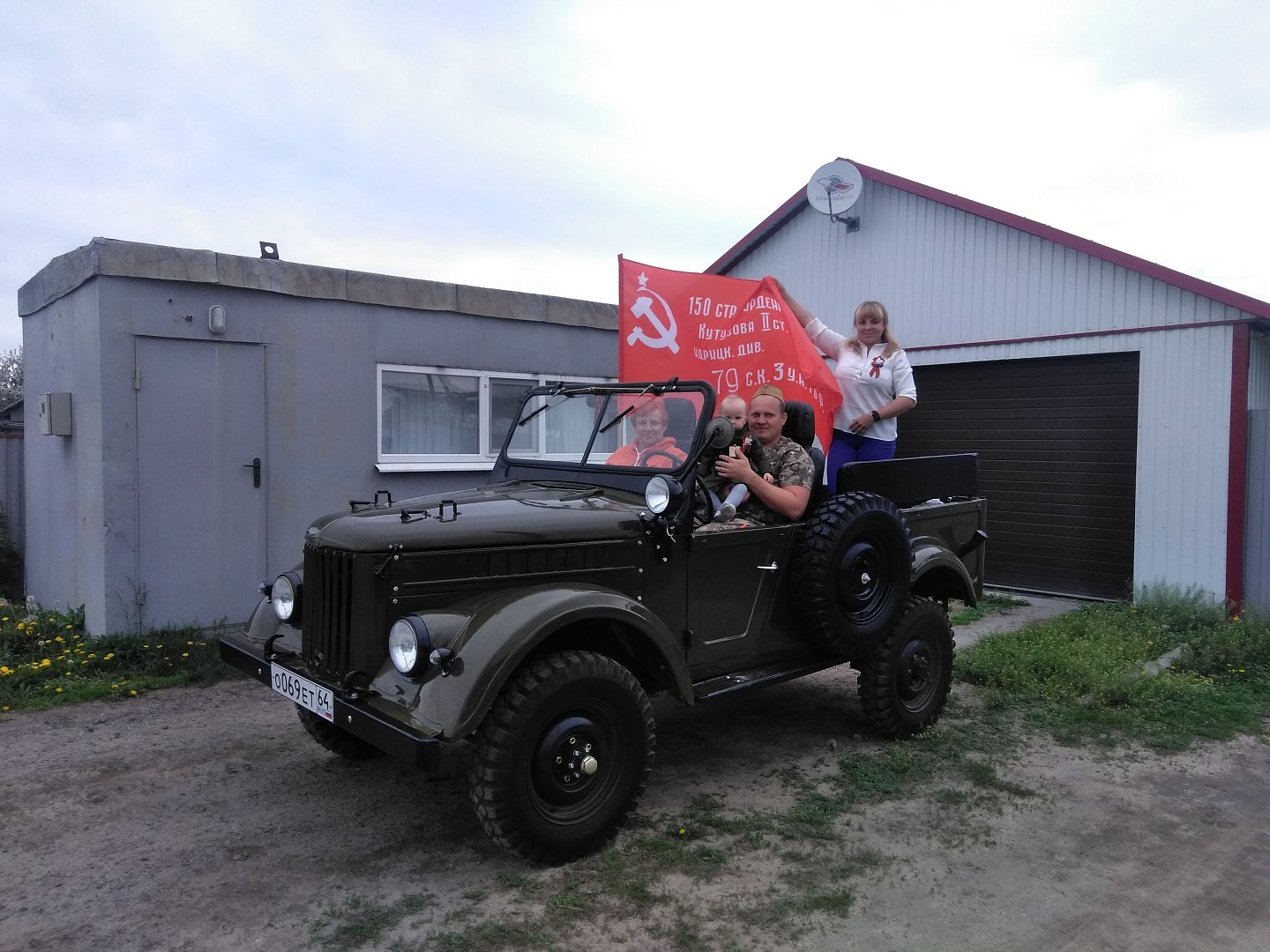 Стараниями мужчины ГАЗ-69 полностью восстановлен. Теперь его не узнать! На 9 мая А.В. Сидоров катает на нем внучек. Столько восторга вызывает у детворы!