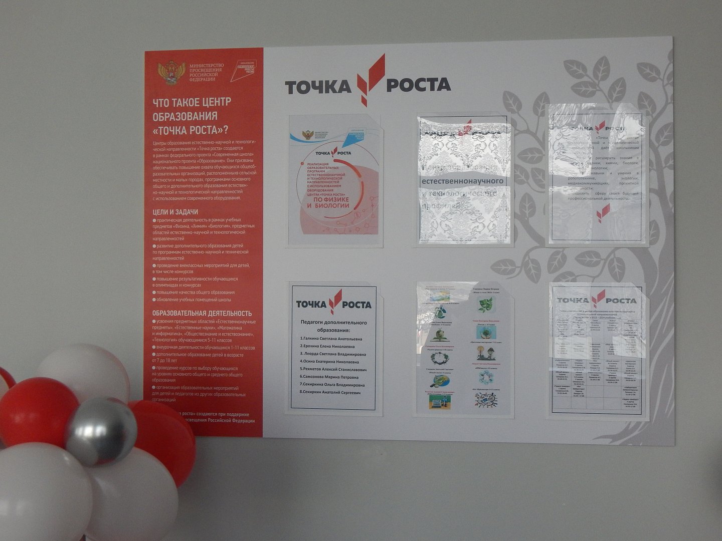 В «Точке роста» будут работать 8 педагогов. Все они прошли обучение по программам дополнительного образования. Начинают свою работу 11 объединений, рассчитанных на школьников разного возраста. Руководителем Центра назначена С.А. Галкина. В своем выступлении Светлана Анатольевна назвала «Точку роста» площадкой для творчества, изобретательства и сотрудничества. Основной ее целью является совершенствование условий для повышения качества образования, расширений возможностей обучающихся школы в освоении учебных предметов, программ дополнительного образования, курсов внеурочной деятельности.