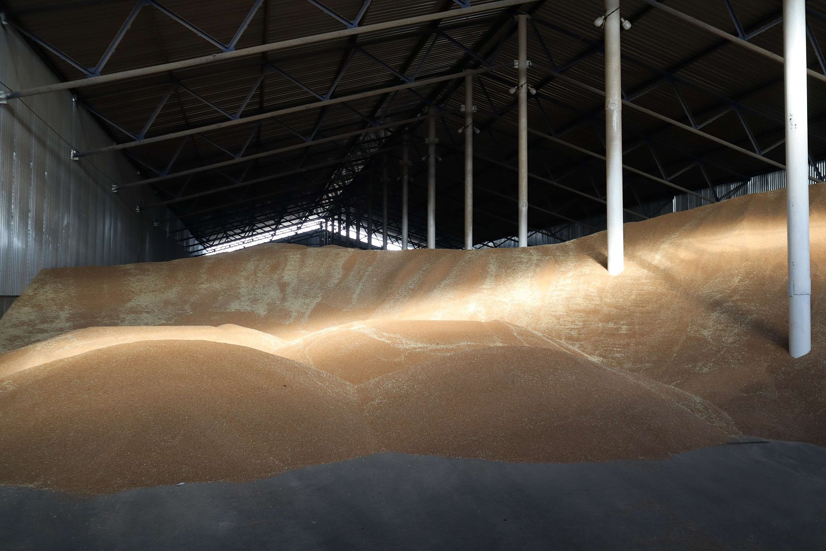 Продолжая беседовать, фермер показал нам закрома, где хранится урожай. В складах ссыпаны горы зерна — невероятно красивое зрелище. Только подумать, сколько вложено человеческого труда, чтобы они оказались здесь! Кстати, летом тут построили дополнительный ангар, заасфальтировав нужную площадку. Заодно сделали навес для техники. Пополнили новинками технический парк. А. В. Жариков похвалился высококлиренсным опрыскивателем, погрузчиком, косилкой самоходной универсальной для скашивания в валок.