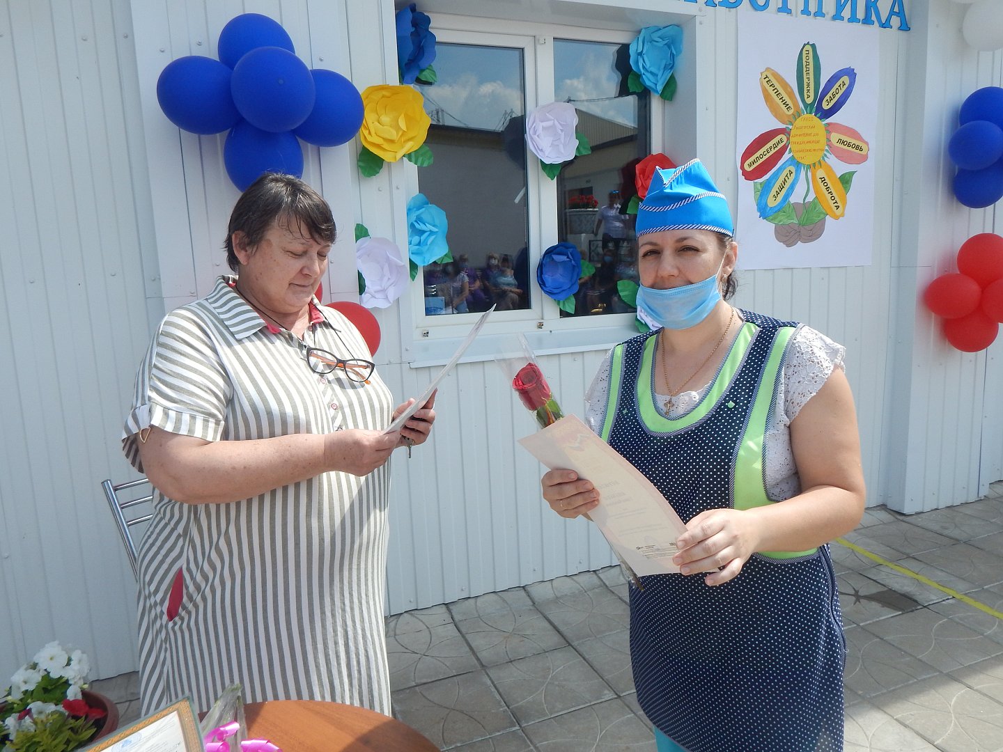 Павлюк Надежду Викторовну, медицинскую сестру, Голоднову Татьяну Валерьевну, младшую медицинскую сестру по уходу за больными. Почетную грамоту главы Лысогорского муниципального района вручила М.М. Третьяковой - медсестре, Е.А.Пасечной, старшей медицинской сестре, бухгалтеру С.Н.Шараповой, повару У.В.Ковальской, рабочему кухни В.В.Демьяновой.