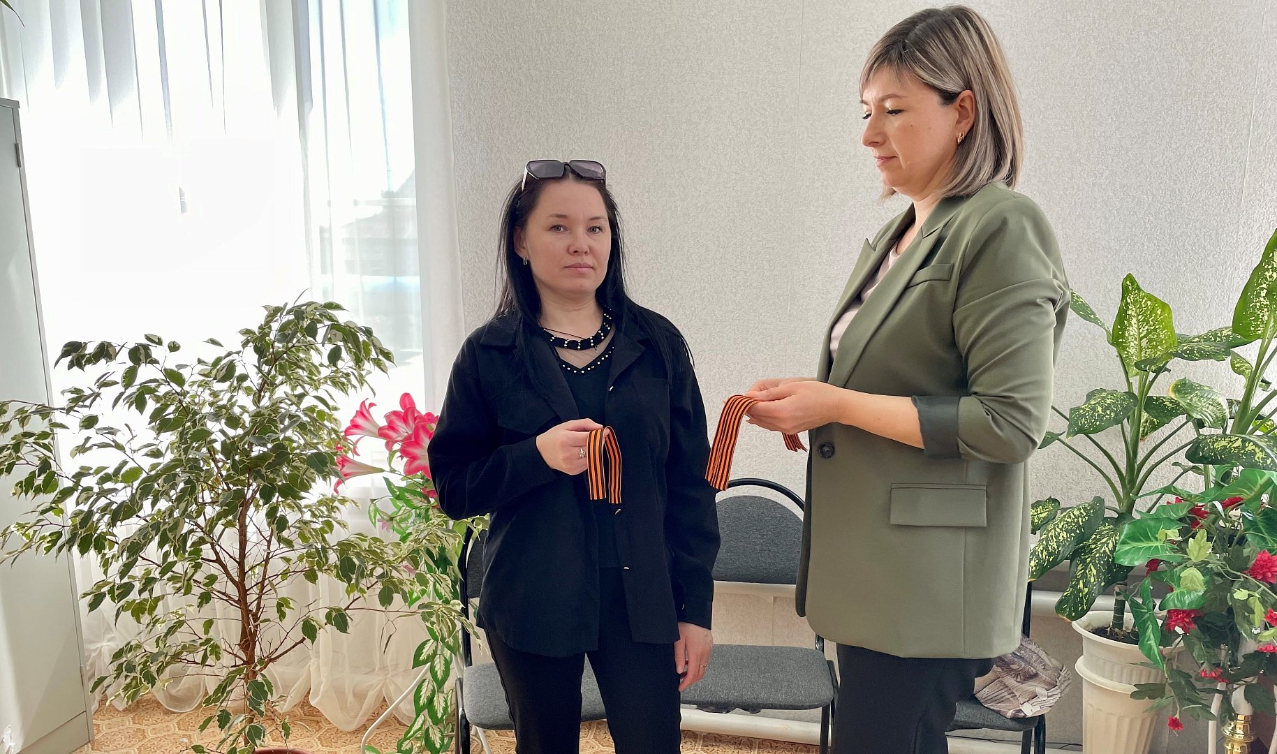 Представители отдела ЗАГС раздают символ Победы всем заявителям, обратившимся на личный приём, обращая особое внимание на то, что ленту нужно носить правильно, размещать рядом со своим сердцем, чтобы отдать дань уважения ветеранам, которые защищали нас во время Второй Мировой войны.