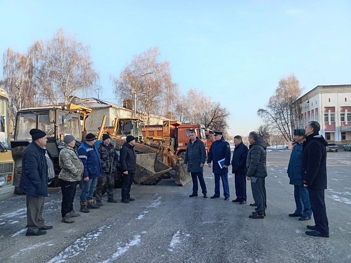В ходе учений отработаны вводные по ликвидации снежных заносов и переметов на открытых участках автодорог, проведены заседание комиссии по чрезвычайным ситуациям и смотр техники.