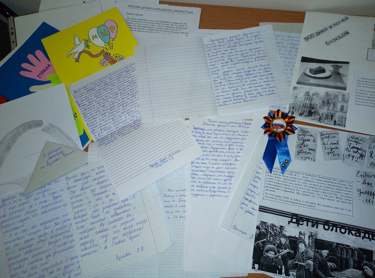 А Стебелевский Илья, учащийся 4 «А» класса в своем письме обращается к сверстникам Ленинграда: «Я знаю, что твое детство было трудное, голодное, ты стоял у станка по многу часов и помогал делать снаряды. У меня другое детство, мирное, спокойное. Проклятая война лишила тебя этого. Я тебя хочу обнять, пожать крепко руку и сказать, большое спасибо за твой подвиг. Ты Герой!»