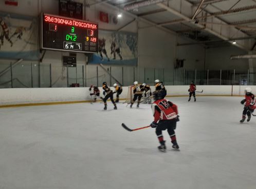 «Подсолнух» полностью погрузился в игру. Скрежет коньков о полупрозрачный лёд, мелькают клюшки, руки, облаком над площадкой висят эмоции — до последней секунды матча ни секунды на расслабление. Накал игры! А на трибунах с азартом, громко, от всей души поддерживают болельщики: идейный вдохновитель и спонсор А.В. Жариков, начальник отдела по работе с молодежью, спорту и туризму администрации Лысогорского МР В.Н. Милаев и родители детей. Тренер Т.Г. Магомедалиев с замиранием сердца переживал особо опасные секунды, когда шайба находилась в опасной близости от ворот. «Звездочке» удалось один раз забить гол, но выиграл все же «Подсолнух»! Счет 3:1!