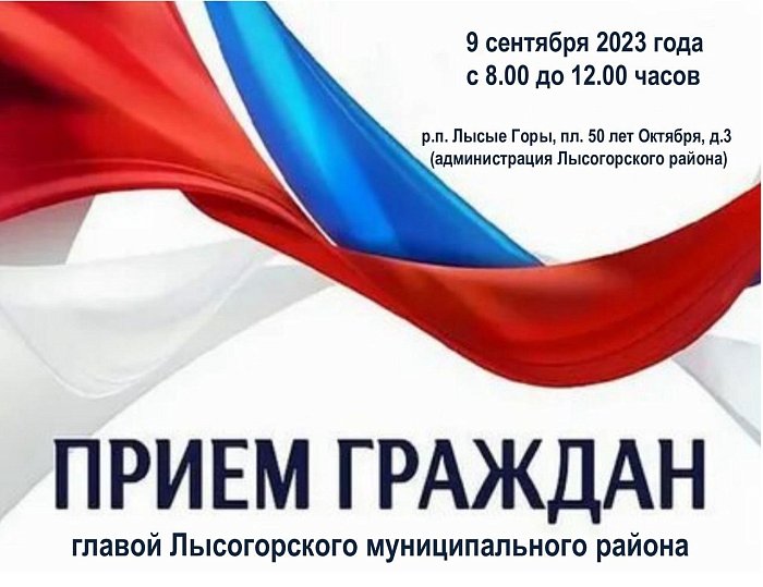9 сентября 2023 года с 8.00 до 12.00 часов глава Лысогорского муниципального района Валентина Фимушкина проведет прием граждан по личным вопросам.