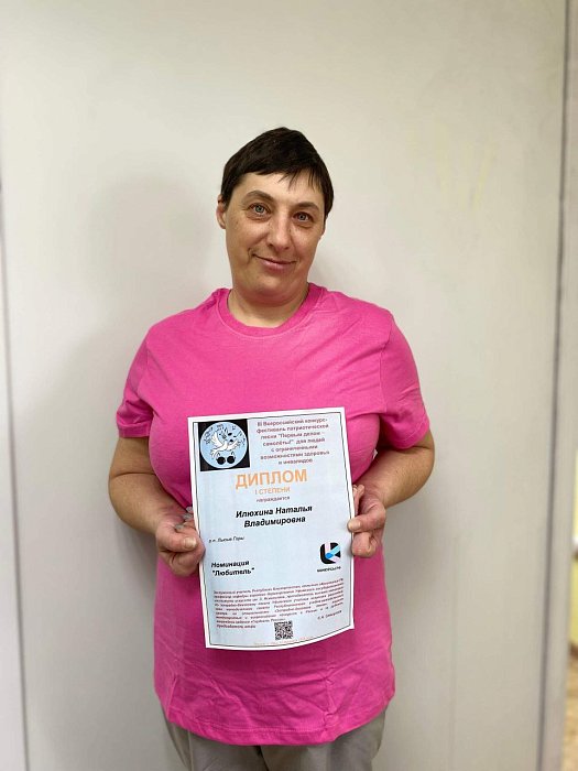 Наталья Илюхина, проживающая в Лысогорском ПНИ, одержала победу в III Всероссийском конкурсе-фестивале патриотических песен «Первым делом – самолеты!», посвященном Дню защитника ОтечестваНаталья завоевала I место и теперь примет участие в онлайн ГАЛА-КОНЦЕРТЕ