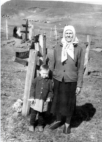 Моя бабушка Фрося умерла в марте 1979 года, кресты, которые стояли и лежали на могиле убрали «рытельщики» - в эту же могилу и установили обычный деревянный крест, который сделали в совхозной мастерской из кое-какой древесины. Весной 1986 года я поняла, что крест подгнил, надо менять и отправилась к лучшему в Юнгеровке плотнику и моему родственнику: его отец и моя баба Фрося были двоюродными брат и сестра.