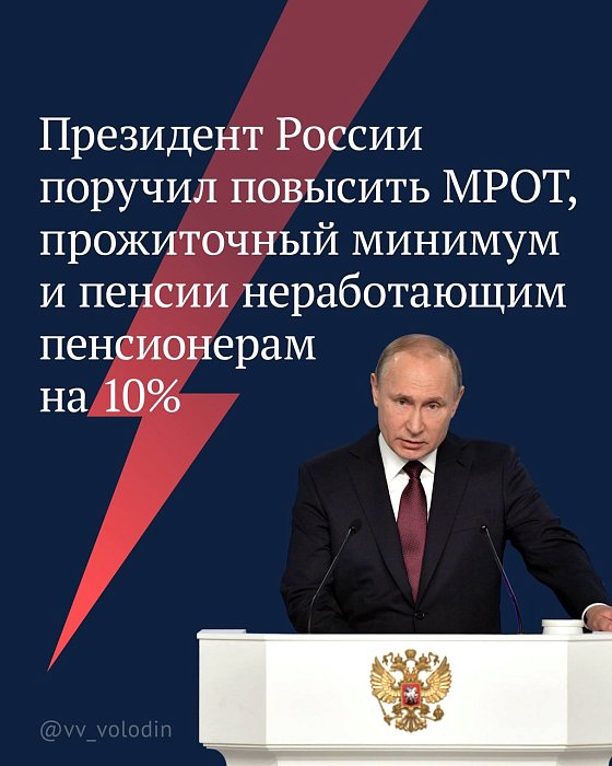 А с 1 июля — минимальный размер оплаты труда, сообщил в телеграм - канале спикер Госдумы Вячеслав Володин.