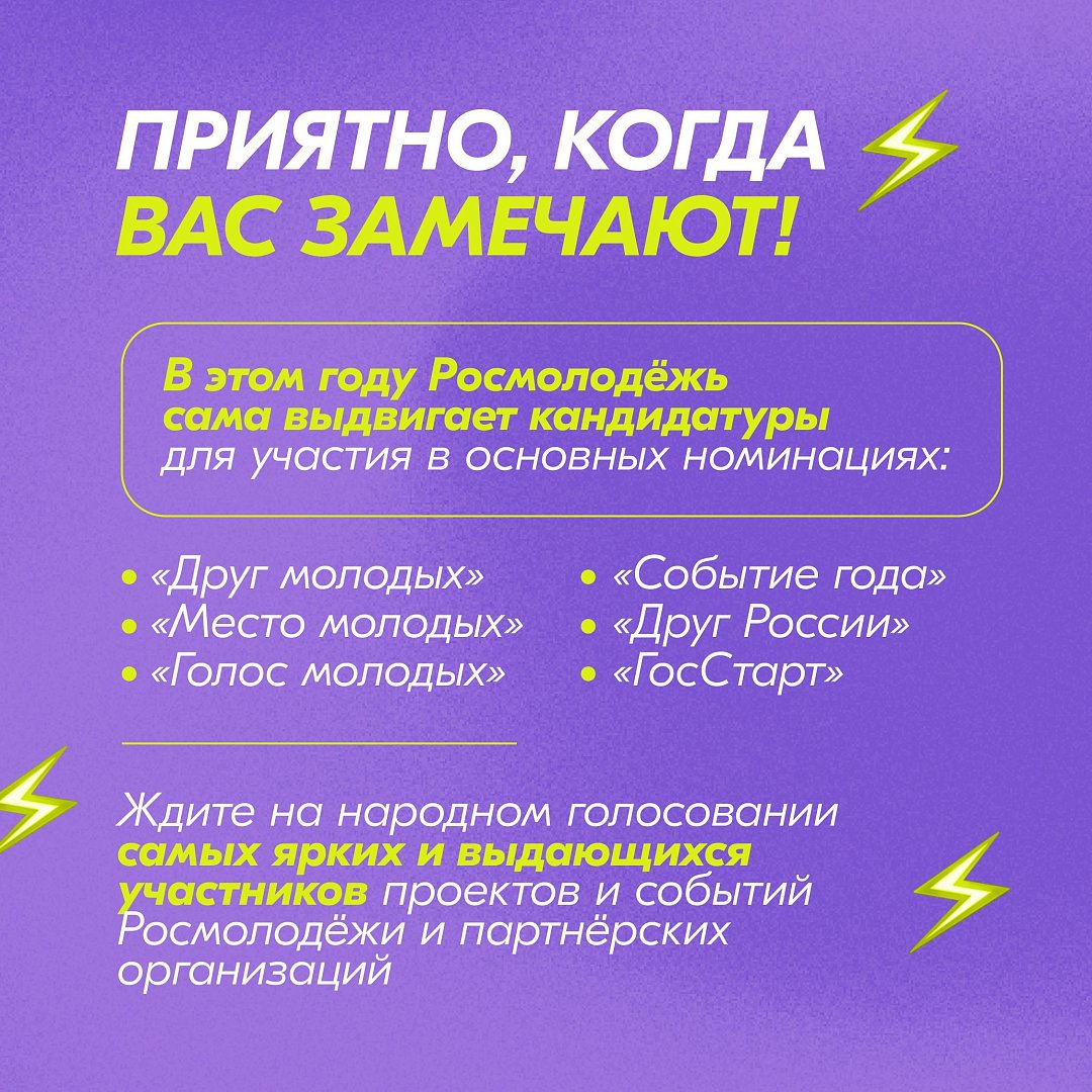 Всероссийская премии молодежных достижений «Время молодых» проводится Росмолодежью с целью общественного признания достижений молодых людей и лидеров сферы молодежной политики, поддержки на всероссийском уровне их выдающихся заслуг, выявления и поощрения лучших представителей профессионального сообщества.