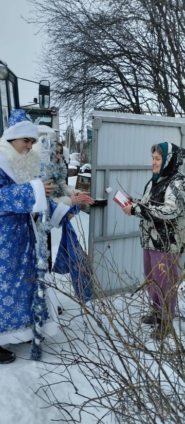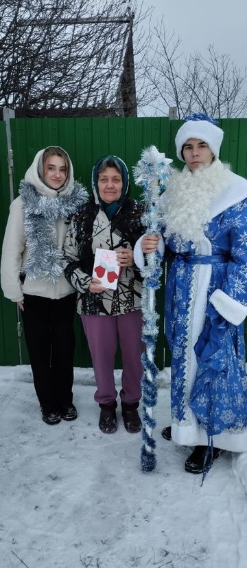 В образе Деда мороза и Снегурочки, с искренними пожеланиями благополучия, здоровья, счастья и долголетия школьные активисты вручили небольшие, но приятные новогодние подарки.