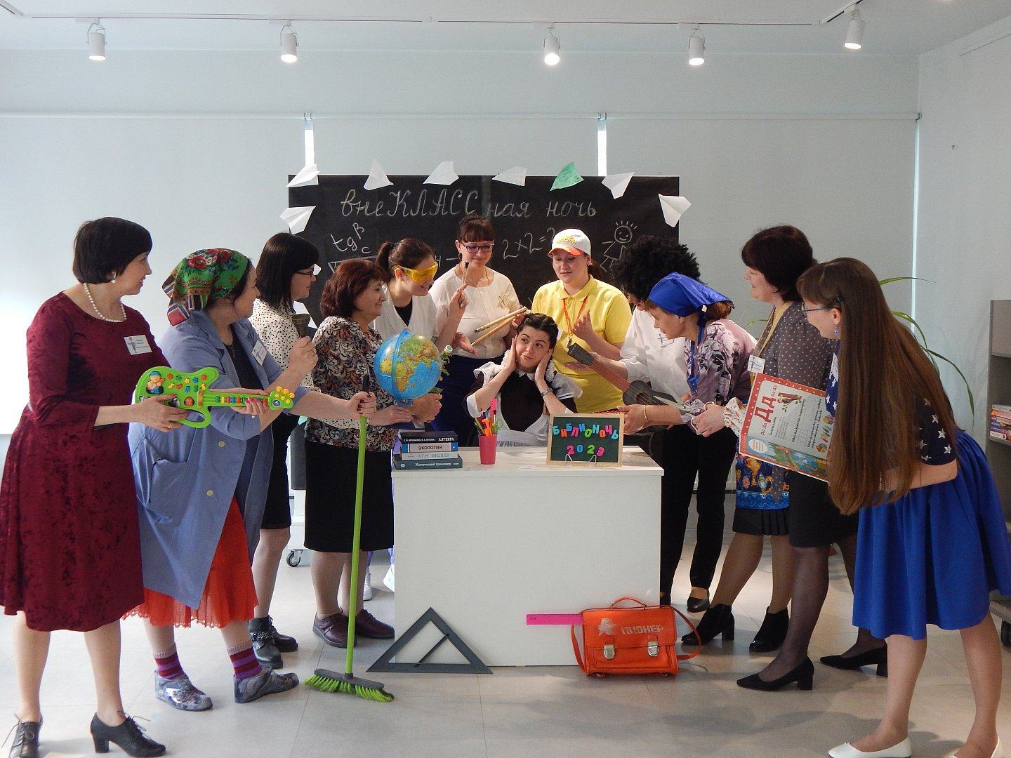 Легким и непринуждённым полетом фантазии библиотекари переквалифицировались в учителей, а районная библиотека превратилась в школу с необычными уроками и столь же эксклюзивными переменами. Давно пора привыкнуть, что раз в году здесь происходит такая кутерьма, от которой в восторге все читатели, как говорится, от мала до велика. Всему объяснение — акция «Библионочь». В этом году она посвящена Году педагога и наставника.