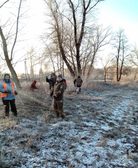 Сотрудники МУП «СанСервис» выпиливают сухие деревья близ парка в Лысых Горах
