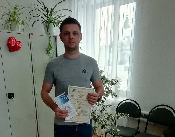 Первый документ нового гражданина Российской Федерации - свидетельство о рождении счастливому отцу вручила ведущий специалист-эксперт отдела ЗАГС Светлана Кузьминова.