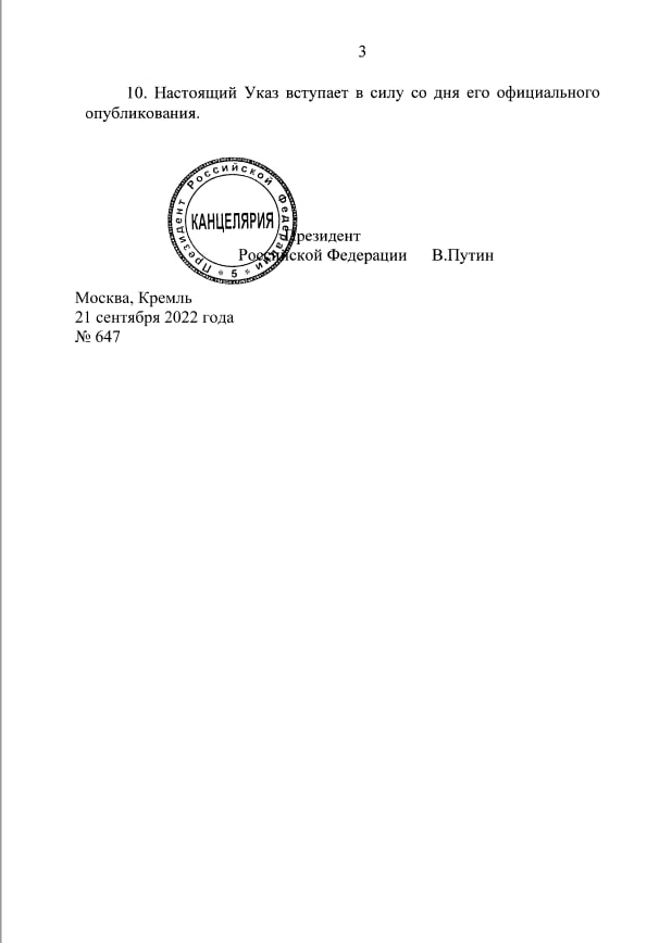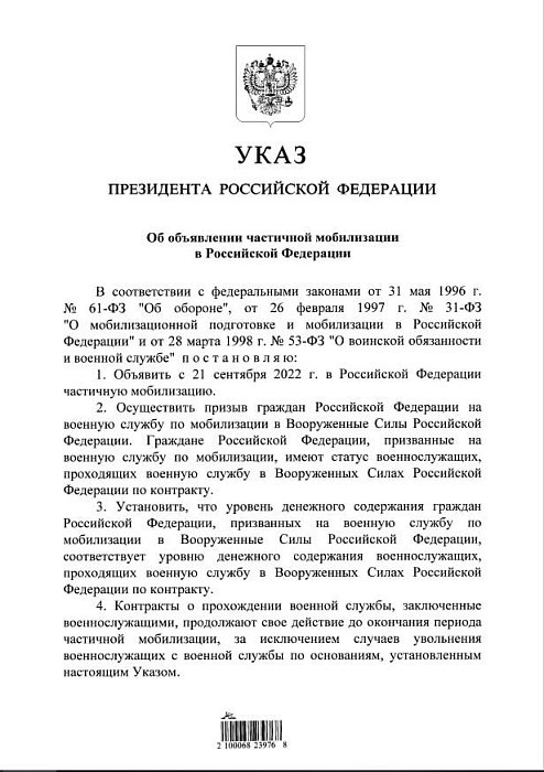 Указ «Об объявлении частичной мобилизации в Российской Федерации»