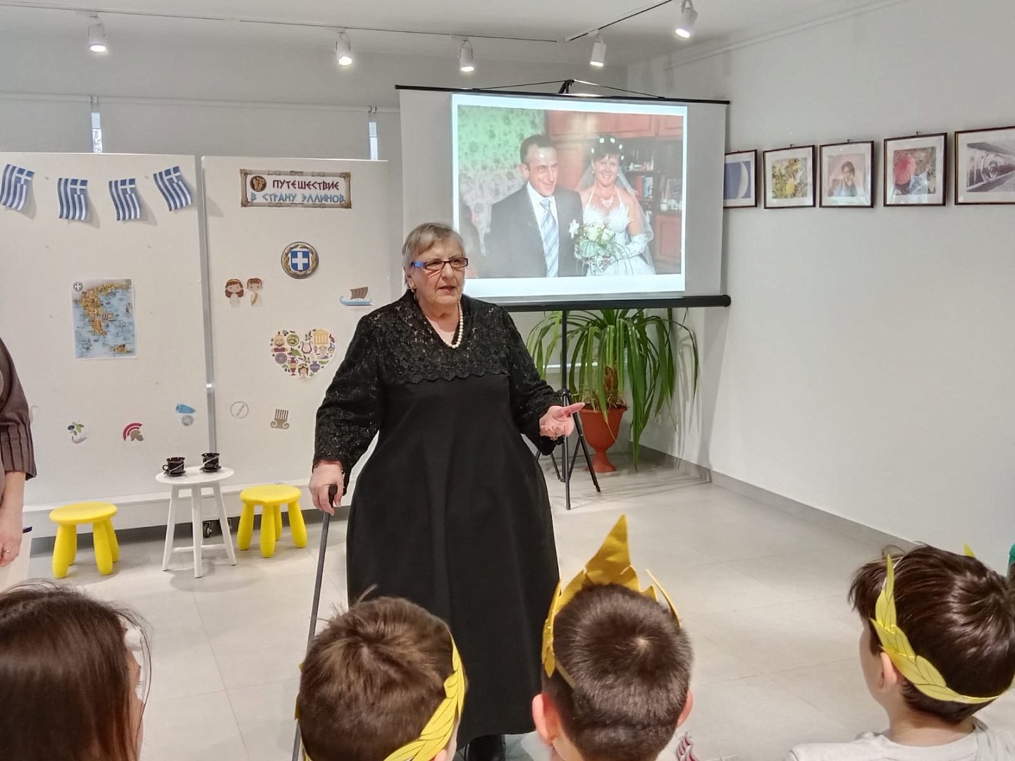 Греция славится не только памятниками архитектуры. Есть и другое наследие. Это мифы, созданные эллинами много веков назад. Перечислив древнегреческих богов, библиотекари предложили посмотреть инсценировку, в которой богов сыграли дети. Перед залом предстали Зевс, Посейдон, Деметра, Афина и Гермес. Они захотели проверить людей и спустились к ним с Олимпа. Все-таки нашлись те, кто открыл свои двери путникам и получил щедрое вознаграждение.