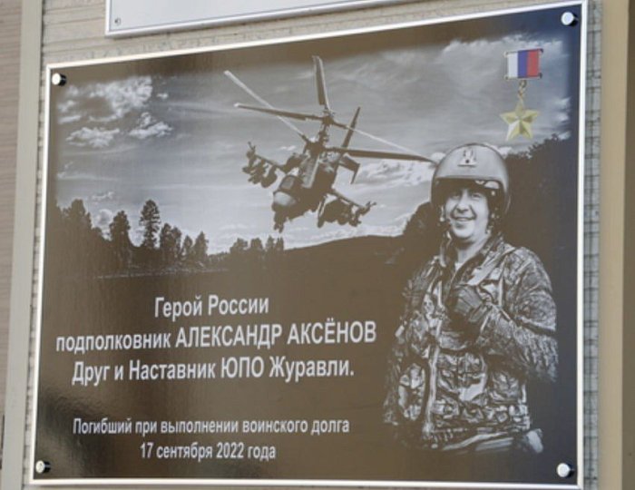 Александр Аксенов шефствовал над этой школой, подполковник оказывал всестороннюю поддержку учреждению. Кроме того, он был одним из создателей поискового отряда «Журавли», участники которого являются учащиеся данного учебного заведения.