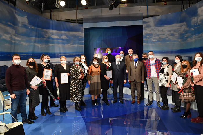Вчера в студии «ГТРК-Саратов» прошло торжественное мероприятие, посвященное профессиональному празднику работников средств массовой информации – Дню Российской печати. В связи с противоэпидемическими ограничениями встреча с журналистами была организована в новом формате —награждаемые были в студии офлайн и участвовали в ток-шоу «Мнения», а их коллеги по творческому цеху могли смотреть церемонию онлайн.Виновников торжества пришли поздравить Губернатор области Валерий Радаев, министр информации и печати Светлана Бакал, министр здравоохранения Олег Костин, директор «ГТРК-Саратов», депутат областной Думы Дмитрий Петров. В онлайн-формате к поздравлениям присоединились председатель реготделения Союза журналистов Лидия Златогорская и редактор газеты «Вольская жизнь» Александр Головачев.